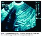 In that study, 280 patients (65%) displayed a thin, distinct, symmetric endometrial echo of 5 mm or less on day 4 through 6, and dysfunctional uterine bleeding was diagnosed (Figure 2). One hundred fifty-three (35%) had SIS. Of these procedures, 44 (29%) were performed because of the inability to adequately characterize and measure the endometrium (Figures 3 and 4) and 109 (71%) were done for endometrial measurement of 5 mm or more. Sixty-one of those patients then had both anterior and posterior endometrial thickness that was symmetric and less than 3 mm, compatible with dysfunctional uterine bleeding. Of the original 433 patients in the study, 58 patients (13%) had focal polypoid masses (Figure 5) that were removed hysteroscopically and confirmed pathologically. Twenty-two patients (5%) had submucous myomas although 148 patients (34%) had clinical and ultrasonographic evidence of fibroids. Ten patients had single-layer measurements of endometrium of more than 3 mm (range 39 mm) during SIS. Of these, five patients had a proliferative endometrium and five had a hyperplastic endometrium. SIS was technically inadequate in two patients, who then underwent hysteroscopy with curettage. Undirected office biopsy alone without imaging would have potentially missed the diagnosis of focal lesions such as polyps, submucous myomas, and focal hyperplasia in up to 80 patients (18%).
