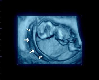 What abnormality of the placenta is affecting this late second-trimester pregnancy?