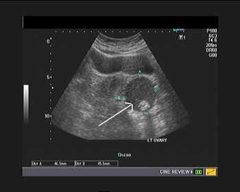 Challenge your diagnostic skills with this image quiz: Is this ovarian lesion cystic in nature or something else?