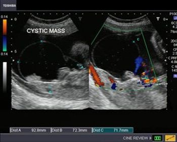This case study shows a 26 week gestation with a cystic mass close to the sacrum.