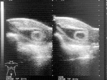 In February 1988, the patient, a 26-year-old married woman, experienced moderate vaginal bleeding. She contacted her gynecologist, who referred her to an ultrasound clinic for a sonographic workup.