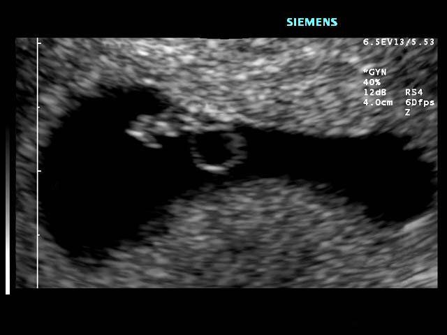 A 29-year-old gravida 10, para 3 (1 term gestation, 1 preterm gestation of twins, 1 stillbirth at 5 months, 2 spontaneous abortions, and 4 elective abortions) presented to the clinic at about 5 weeks’ gestation with abdominal pain and vaginal bleeding. She described the pain as sporadic, mostly on the left side, exacerbated by movement, and resolving with rest, and the bleeding as initially intermittent but then heavier “like a period.”