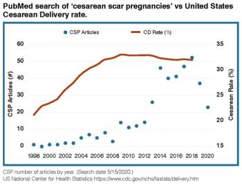 Cesarean scar pregnancy (CSP) is a complication in which an early pregnancy implants in the scar from a prior cesarean delivery. Incidence and recognition of this condition appear to have increased over the past two decades, perhaps due to high worldwide cesarean delivery rates. The clinical presentation is variable, and many women are asymptomatic at presentation. CSP can be difficult to diagnose in a timely fashion. Ultrasound is the primary imaging modality for CSP diagnosis. Expectantly managed CSP is associated with high rates of severe maternal morbidity such as hemorrhage, placenta accreta spectrum (PAS), and uterine rupture. Given these substantial risks, pregnancy termination is recommended after CSP diagnosis. Several surgical and medical treatments have been described for this disorder, but at this time, optimal management remains uncertain.