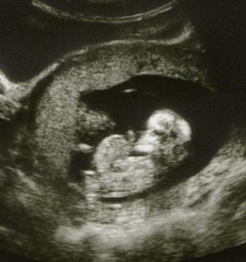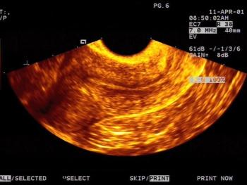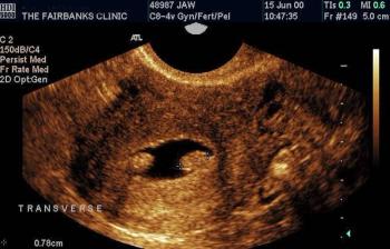A 29-year-old gravida 10, para 3 (1 term gestation, 1 preterm gestation of twins, 1 stillbirth at 5 months, 2 spontaneous abortions, and 4 elective abortions) presented to the clinic at about 5 weeks’ gestation with abdominal pain and vaginal bleeding. She described the pain as sporadic, mostly on the left side, exacerbated by movement, and resolving with rest, and the bleeding as initially intermittent but then heavier “like a period.”