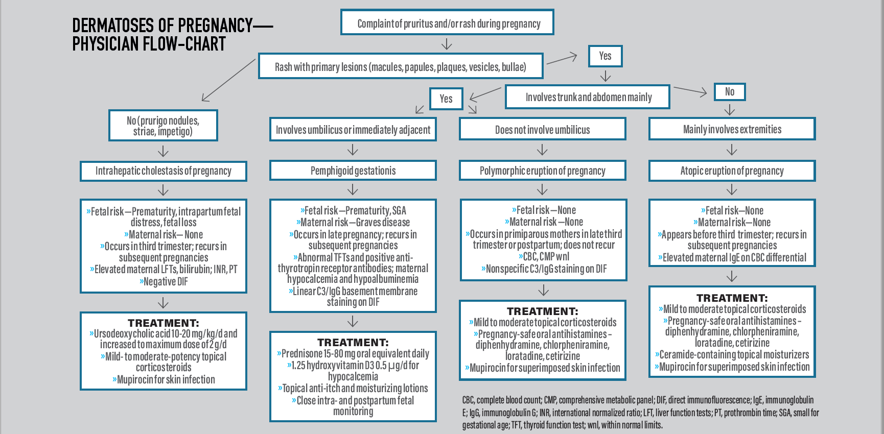 For an easy-to-use reference, print out this Dermatoses of Pregnancy Physician Flow Chart .
